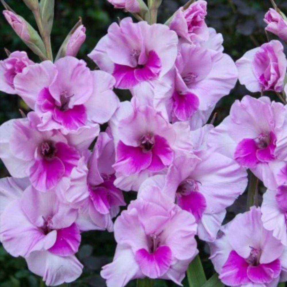 Луковицы Гладиолуса гофрированного Сакраменто Раффл (Gladiolus Sacramento Ruffle) дадут шанс вырастить в саду букеты шикарных, любимых цветов. Многолетник вырастает до 110 сантиметров в высоту, период цветения очень продолжительный с июля по октябрь. Растение обладает вертикальными одиночными стеблями с линейными листьями. Цветки собираются в одно- двух- или спиральные соцветия, имеют форму в виде воронки, состоящей из шести лепестков разного размера светлого розово-сиреневого тона, нижний лепесток имеет окрас цвета фуксии. Безветренные и солнечные участки для растения предпочтительней. Гладиолусы гофрированные Сакраменто Раффл великолепны в оформлении клумб, и прекрасно смотрятся в вазах (в срезанном виде).