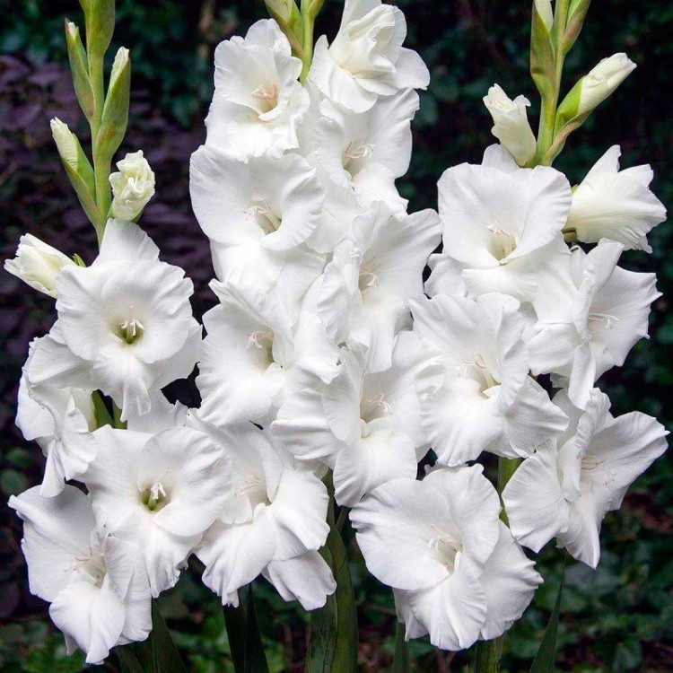 Гладиолус "Бангладеш" - гофрированный, многолетний, крупноцветковый сорт. Цветки крупные, собранные в колосовидные соцветия, белоснежного цвета с золотистой серединой. Растение высокое, стебель прямой и крепкий, листья узкие, линейные. Гладиолус неприхотлив в выращивании, легко размножается клубнелуковицами или клубнепочками. Любит обильный полив, после полива почву вокруг растения взрыхляют и окучивают. Перед посадкой в почву рекомендуется внести минеральное удобрение для луковичных цветов, хорошо взрыхлить и дренировать. Посадку Гладиолуса крупноцветкового Бангладеш производят весной с апреля по май.