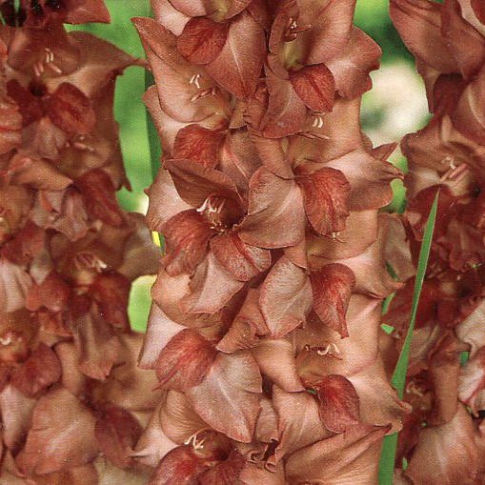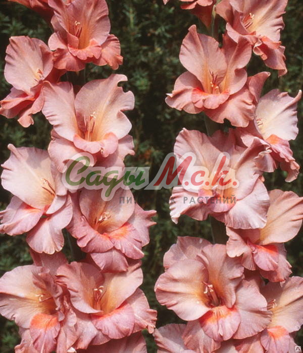 Гладиолус крупноцветковый Даск (Gladiolus) формируется из клубнелуковиц. Они имеют устойчивость к ряду цветочных заболеваний. Даск цветет молочно-кофейным цветом. Во время цветения растения воздух наполняется приятным едва уловимым ароматом.
