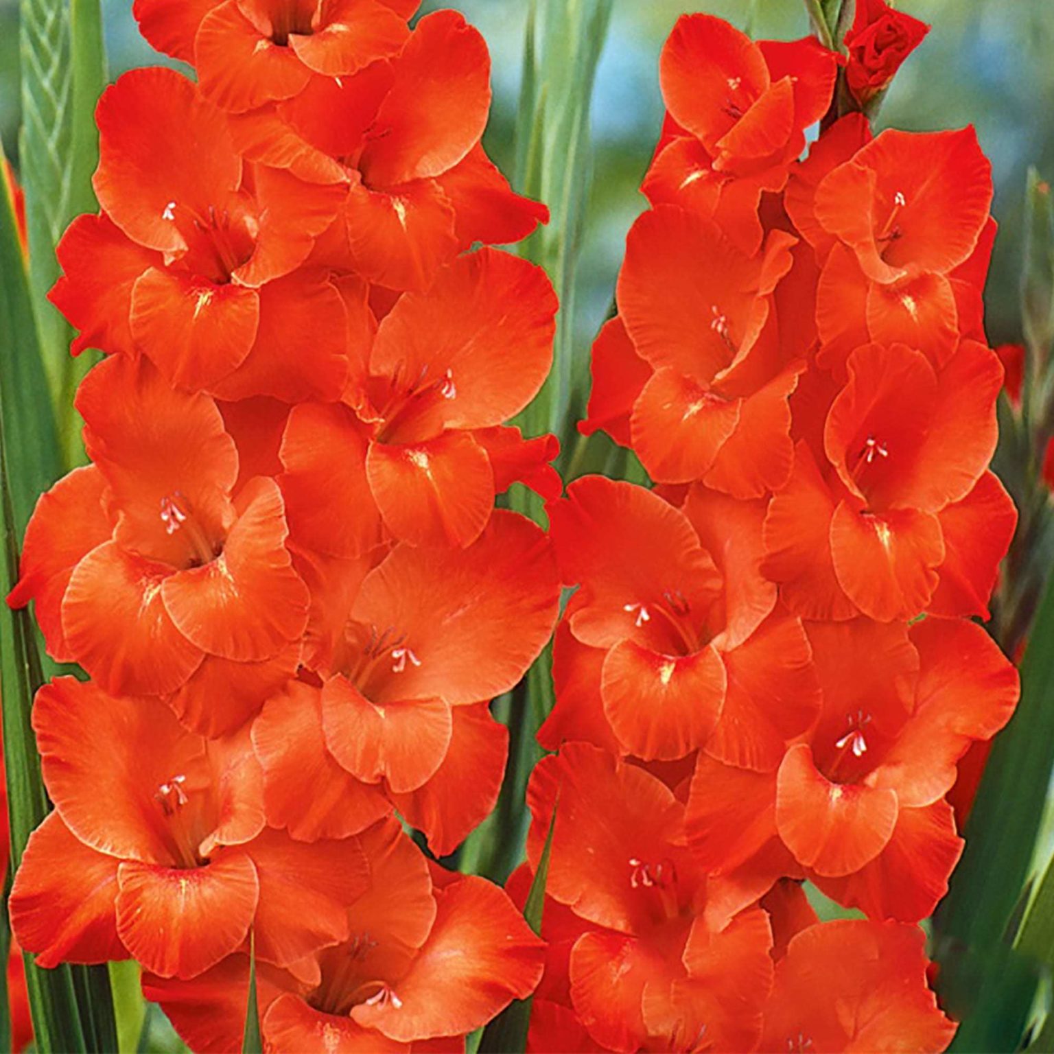 Луковицы гладиолуса Вигс Сенсейшен (Wiggs Sensation) позволяют создать «оранжевое» настроение на участке. Чистый оранжево-красный оттенок лепестков словно горит на солнце настоящим огнем. Особенно эффектно смотрятся такие гладиолусы, высаженные группой по 8 или 10 штук на изумрудном газоне. Высота Гладиолуса крупноцветкового Вигс Сенсейшн ограничена 1 метром, длина колоса составляет 60 сантиметров. На цветоносе плотно расположены от 12 до 14 цветков, каждый до 17 сантиметров в диаметре. Лепестки с ровным краем, на каждом имеется едва заметный белый штрих, что не портит впечатление от пламенного оттенка бутона.