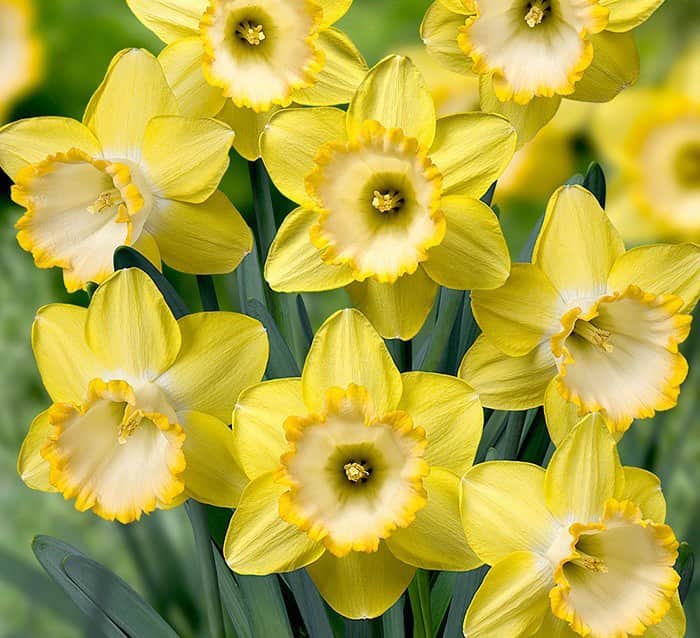 Нарцисс Алексис Бьюти - раннецветущий, многолетний сорт. Луковицы нарциссов среднего размера, отлично приживаются при любых климатических условиях. Цветки крупного размера, светло-желтые с кремовой коронкой с золотистым кантом. Растение неприхотливое в выращивании, стебель прямостоячий, крепкий. Нарцисс Алексис Бьюти пользуется особой популярностью в декоративном садоводстве, их выращивают в открытом грунте на клумбах.