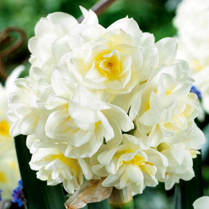 Нарцисс Эрличе - махровый, многоцветковый сорт. Цветки ароматные, белого цвета с желтым центром. Луковицы нарциссов среднего размера, отлично приживаются при любых климатических условиях. Растение неприхотливое в выращивании, стебель прямостоячий, крепкий. Нарцисс Эрличе пользуется особой популярностью в декоративном садоводстве, их используют в озеленении, выращивают в открытом грунте на клумбах.