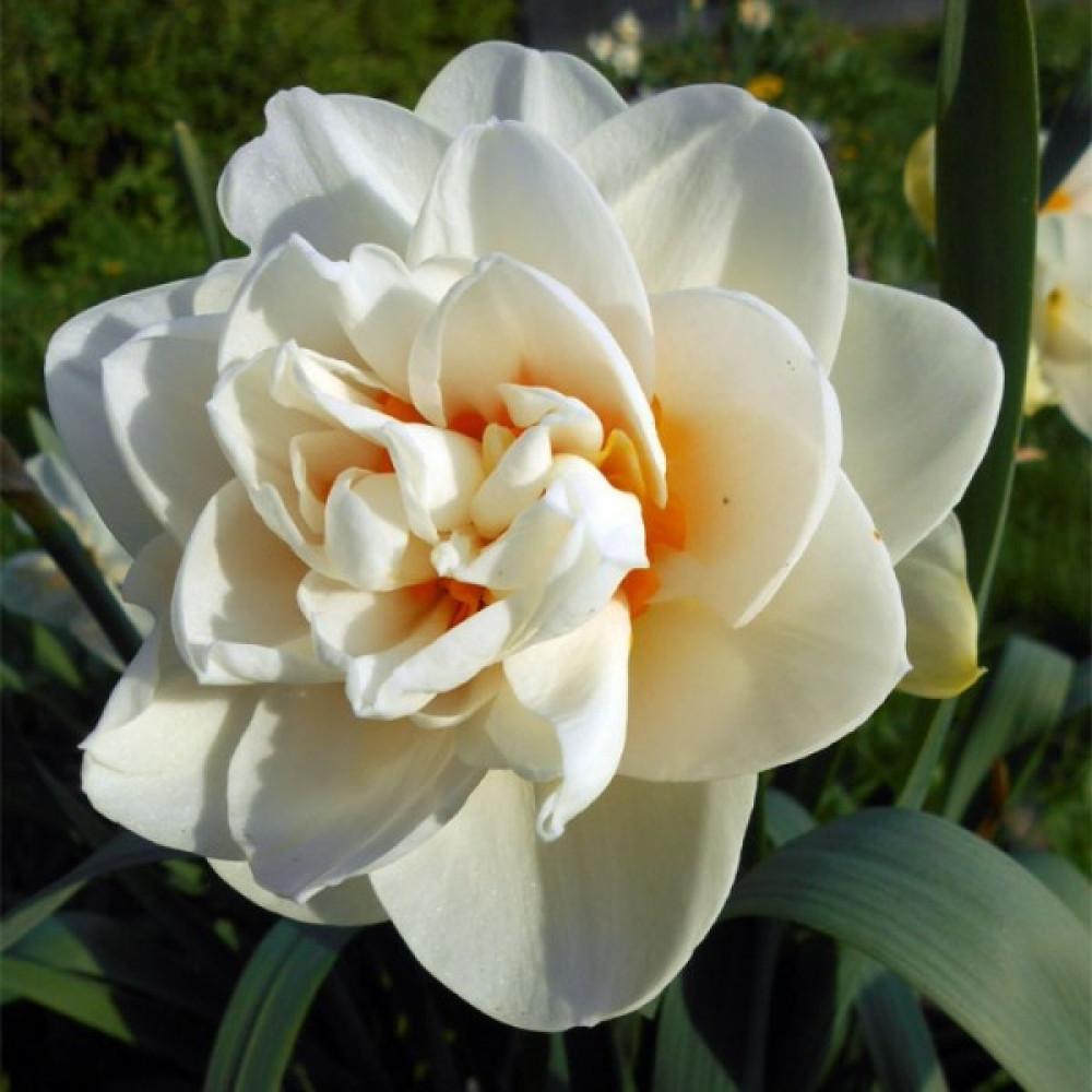Нарцисс Гей Тейбор - крупный махровый сорт оттенка слоновой кости, похожий на камелию, с чередущющимися лепестками мандариново-оранжевого цвета. Высота растения около 35 см, диаметр цветка от 8 до 9 см. Нарцисс Гей Тейбор прекрасно подходит для групповой посадки и заполнения мест между многолетними культурами.