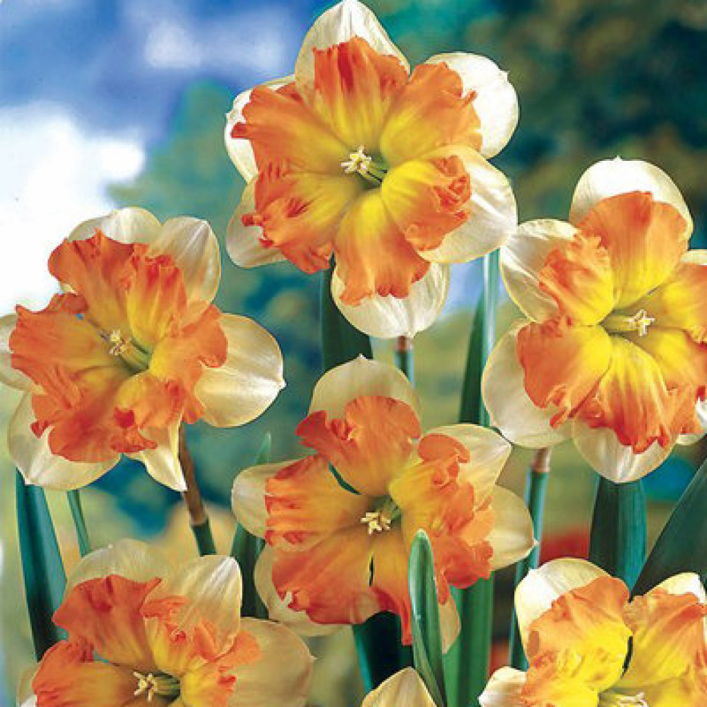 Нарцисс с расщеплённой коронкой "Тиритомба" - раннецветущий, многолетний сорт. Нарциссы - культура более теневыносливая по сравнению, например, с тюльпанами, но на освещенных местах цветение значительно выше, чем в тени. Цветки с приятным ароматом, крупного размера, одиночные, кремового цвета с оранжевой коронкой. Растение неприхотливое в выращивании, стебель прямостоячий, крепкий. Нарцисс Тиритомба пользуется особой популярностью в декоративном садоводстве, их выращивают в открытом грунте на клумбах.