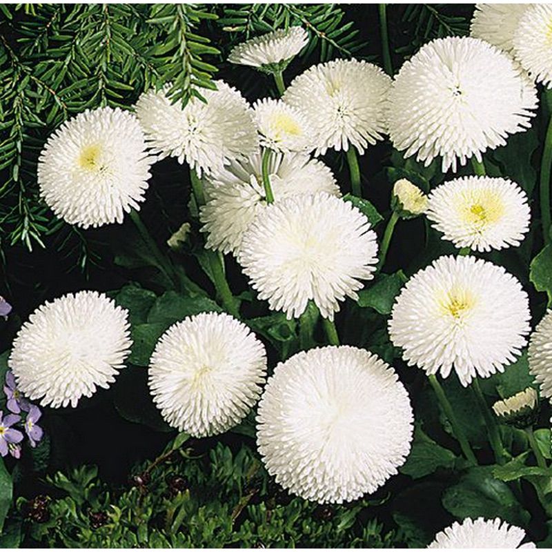 Маргаритка Тассо Вайт (Bellis perennis) может расти на одном место около двух лет. В высоту достигает 15 сантиметров. Предпочитает солнечное место с хорошо дренированной почвой. Обильно цветет на богатых гумусом суглинках.