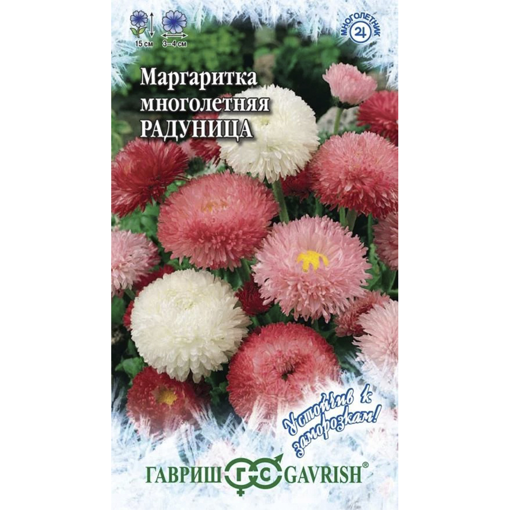 Неприхотливое, очень зимостойкое растение из семейства Астровые высотой 15 см. Цветет в апреле-июле, при хорошем уходе цветение продолжается до осени с перерывом в жаркий период сезона. Соцветия 3-6 см в диаметре белой, розовой, красной окраски. Хорошо растет на любых почвах. Светолюбивое растение, но хорошо выдерживает легкое затенение. Семена высевают в конце июня - начале июля в открытый грунт, всходы появляются через 7-10 дней. Маргаритка прекрасно подходит для выращивания на клумбах, рабатках и в бордюрах, а также в горшках и балконных ящиках.