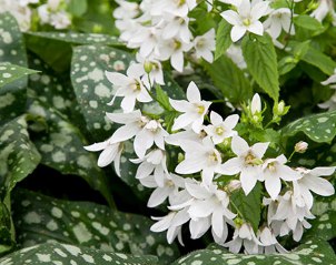 Медуница Sissinghurst White - сорт высотой 20 см. Листья грубо опушённые, покрытые многочисленными белыми пятнами. Цветки чисто-белые, появляющиеся из бледно-розовых почек, в апреле.