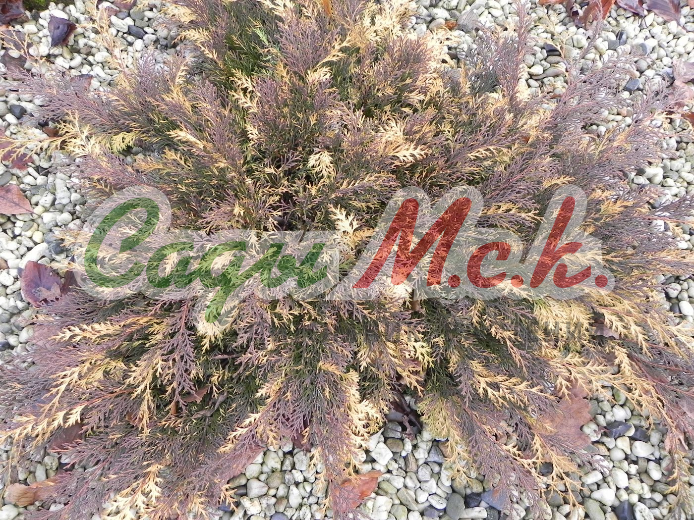 Карликовый медленнорастущий сорт микробиоты, годовой прирост составляет около 7-10 см. К десяти годам его высота доходит до 40-50 см и 120-150 см в ширину. Сорт отличается очень интересным цветом хвои- зеленая с желтыми кончиками и легким запахом. Для посадки лучше выбрать тень или полутень