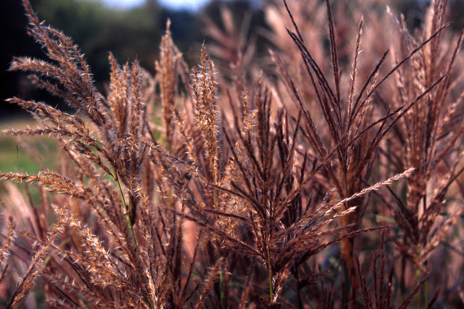 Мискантус китайский Ротер Пфейл (высота 160-180 см) - мощный, короткокорневищный, рыхлокустовой многолетний злак с прямостоячими, облиственными в нижней части стеблями. Листья линейные, до 2 см шириной, с толстым ребром посередине, жесткие, шершавые. Осенняя окраска листьев яркая, красно-пурпурная. Соцветия красно-коричневые при распускании, позднее становятся серебристыми. Цветет с августа по октябрь. Предпочитает открытые солнечные места (при затенении не цветут). Прекрасно себя чувствуют на переувлажненных участках, но могут расти и на относительно сухих местах, разрастаясь при этом не так сильно. Мискантусы используют для украшения берегов водоемов, их высаживают отдельно или группами в миксбордерах, рокариях, возле газонов. Необыкновенно красивые соцветия мискантуса используют при создании сухих флористических композиций.