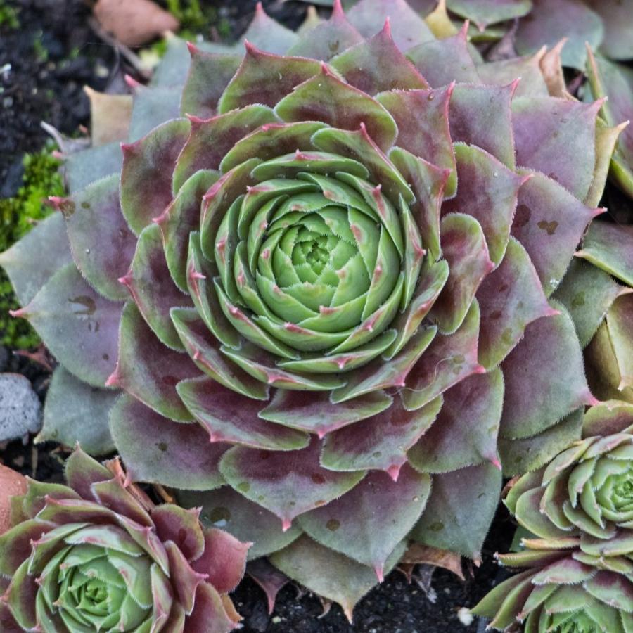 Молодило Pacific Sonata - почвопокровный многолетник. Диаметр взрослого растения 12-14 см. Листья большие, удлиненные, зеленые. Окочания листьев слегка заостренные. Кайма отличается пурпурным цветом.