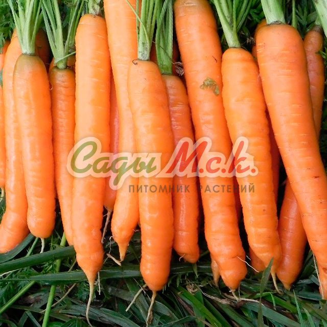 Позднеспелый сорт БЕРЛИКУМ РОЯЛ характеризуется неприхотливостью, устойчивостью к заболеваниям и способностью адаптироваться к климатическим условиям различных регионов, что делает его популярным среди огородников. Розетка листьев прямостоячая. Корнеплоды длинные, цилиндрические с тупым кончиком (сортотип Берликум), длиной 20-23 см и массой 120-190 г, с ровной головкой, сладкие, сочные, хрустящие и очень вкусные. Сердцевина и кора ярко-оранжевого цвета. Сорт отличается повышенным содержанием каротина и длительным сроком хранения урожая. Используют для приготовления овощных салатов, соков, детского пюре, добавляют в первые и вторые блюда. Выращивают посевом семян в открытый грунт в конце апреля-начале мая на глубину 1 см, расстояние между рядками 15 см. Подросшие всходы прореживают, оставляя между растениями по 5-7 см. Морковь нормализует обмен веществ, укрепляет иммунитет, благоприятно сказывается на зрительной функции. Урожайность 1,2-3,6 кг/м2.