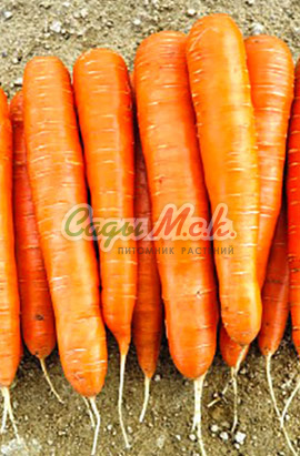 Великолепные корнеплоды для хранения. Высокоурожайный среднеспелый сорт. Сортотип Нантская. Период от всходов до уборки урожая 100-110 дней. Корнеплод цилиндрический, тупоконечный, с отличной внутренней и наружной окраской. Длина 16-18 см. Масса 110-120 г. Сердцевина маленькая, оранжевого цвета. Мякоть нежная, сочная, великолепного вкуса. Рекомендуется для потребления в свежем виде, переработки и хранения.