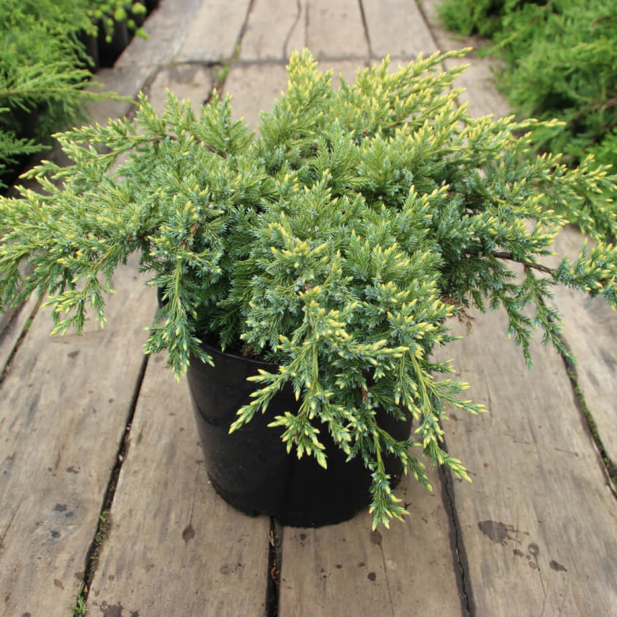 Можжевельник Dream Joy - невероятно красивый медленнорастущий сорт можжевельника, который достигает 0,3 м высоты при диаметре 0,8 м. Хвоя густая, чешуйчатая, серебристо-голубая с кремовыми кончиками, в период интенсивного роста – золотисто – жёлтая, что позволяет получать в саду интересный цветовой эффект. Солнцелюбив, зимостоек. К почвам не требователен, растёт на любой почве, но лучше плодородная, умеренно влажная.
