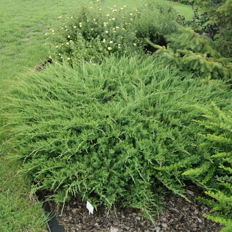 Приземистый куст, не превышающий 0,5 м в высоту, зато формирующий шикарную крону диаметром около 4 м. Неприхотливый почвопокровный можжевельник растет на любых почвах. Крупномер казацкий Аrcaida не требует никакого ухода. Его светло-зеленая хвоя выглядит очень привлекательно, поэтому кустарник пользуется огромной популярностью у ландшафтных дизайнеров. Сорт морозостоек, засухоустойчив.