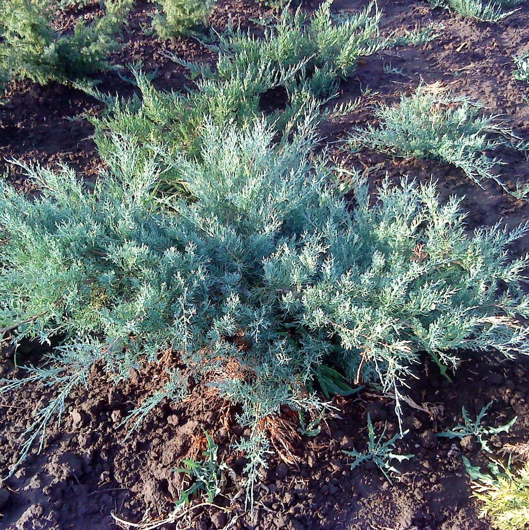 Взрослое растение вырастает всего на 1 м в высоту, раскидываясь при этом на 3 м в стороны. Если посадить рядом несколько можжевельников Глаука, то можно получить красивый сизый ковер из хвои. На длинных ветках куста, растущих почти параллельно земле, появляются черные яркие шишкоягоды, увеличивающие декоративность этого сорта.