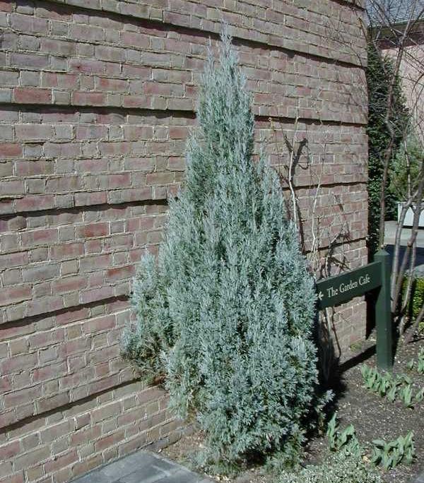 Скальный можжевельник с широким основанием и заостренной макушкой, кустарник имеет аккуратную форму, максимальная высота 3-4 метра, диаметр не превышает 1,5-2 метров. Сорт относится к теневыносливым можжевельникам, но для поддержания его яркой зелено-голубой окраски, место посадки стоит выбрать солнечное или полутенистое. Морозы, засуху и обрезку переносит превосходно.