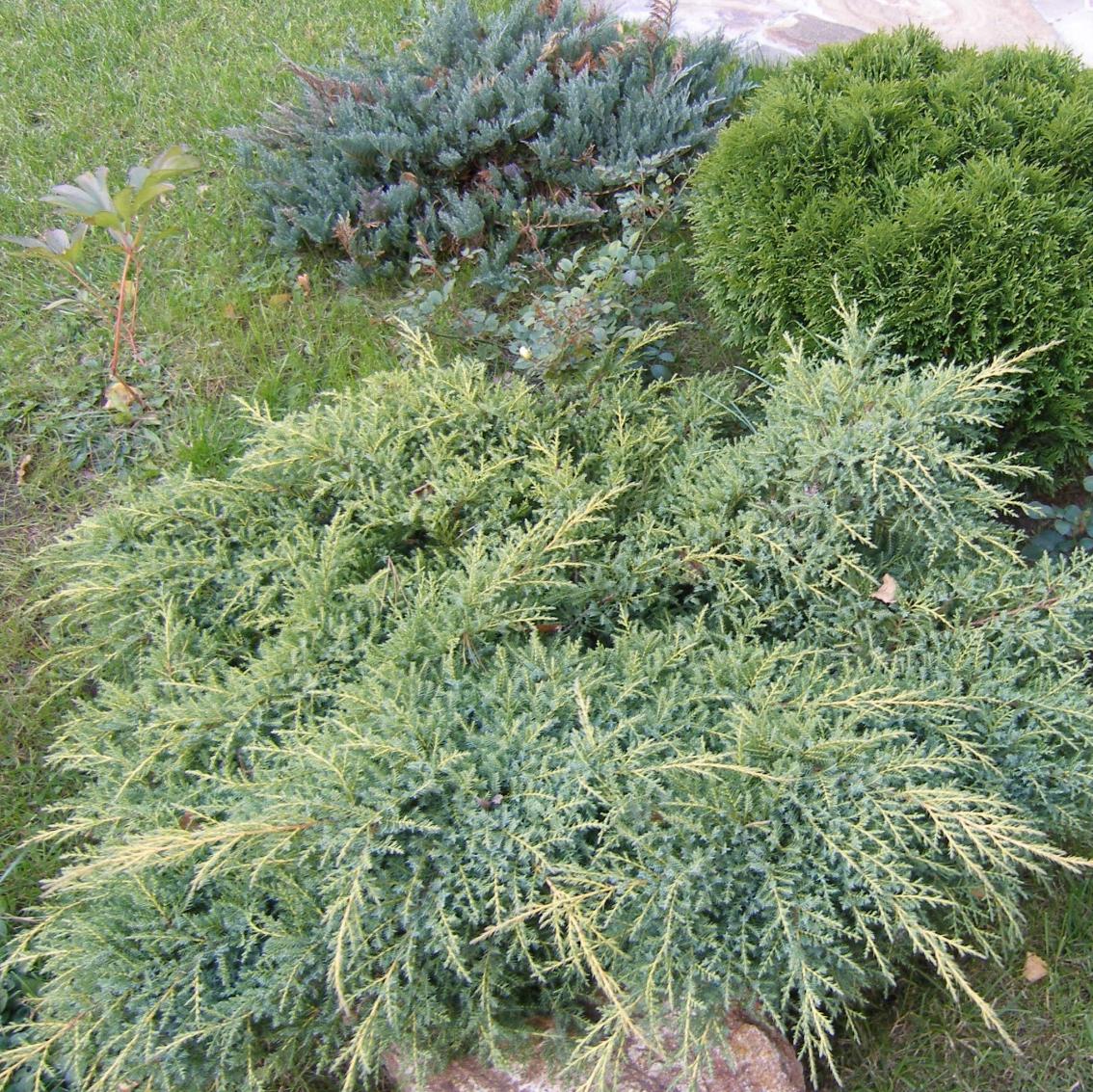 Можжевельник Pfitzeriana Compacta - широкий плоский кустарник высотой до 0,8 м при ширине 2,5-3 м. Ветки распростерты горизонтально, частые, тонкие, с прямыми концами. Хвоя серо-зеленая, двух типов, игловидная особенно обильная, относительно короткая и мягкая.