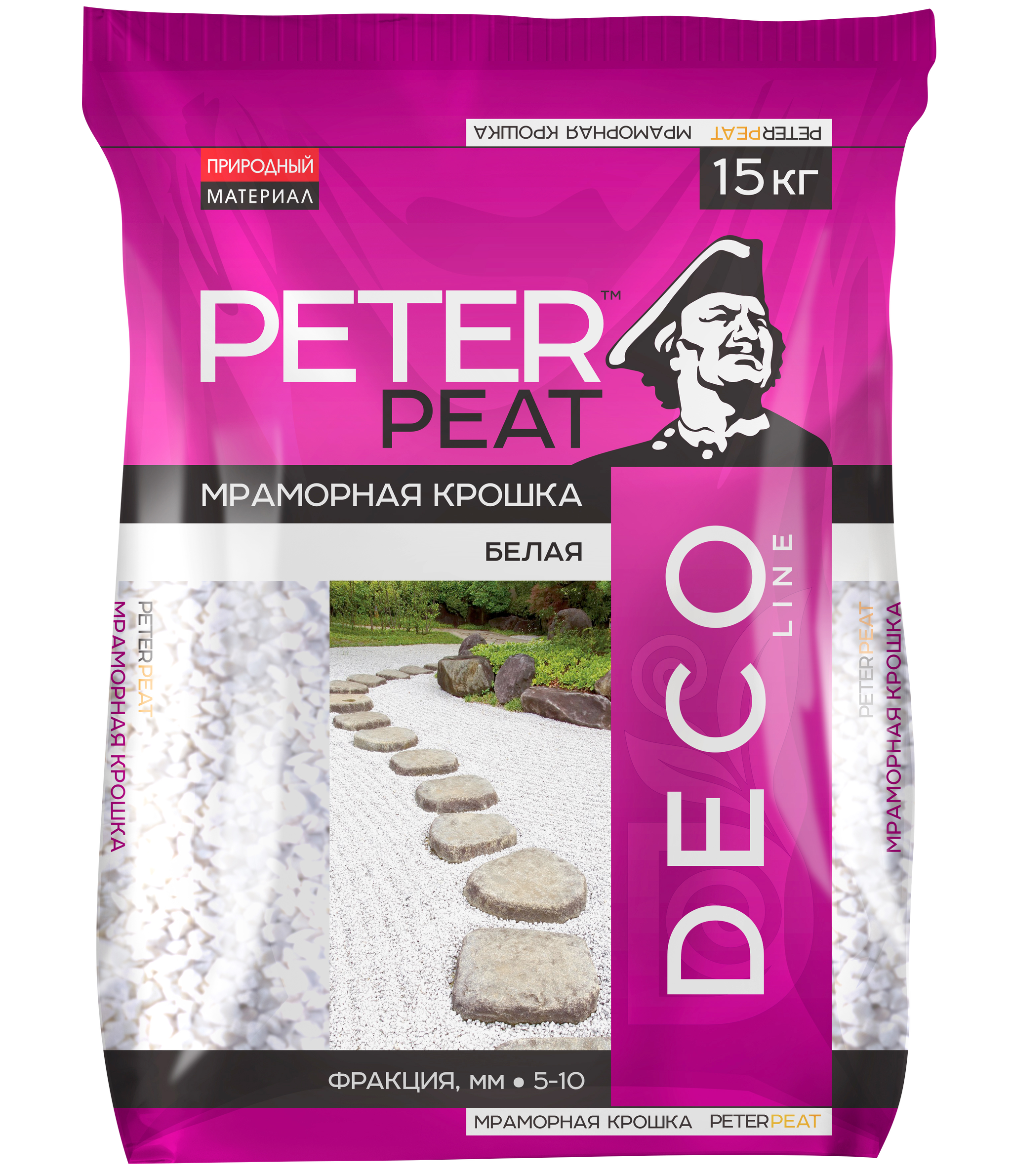 Мраморная крошка белая (фракция 5-10, линия Деко) 15 кг - природные материалы для декорирования. Используется в ландшафтном дизайне для офромления цветников, альпийских горок, оригинальных клумб, засыпки тропинок и создания композиций.