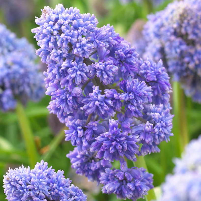 Мускари армянский сорт Фэнтази Криэйшн – высокодекоративный сорт с махровыми сине-зелеными цветками. Особенность сорта заключается именно в окрасе цветков – синий цвет плавно переходит в зеленый и обратно. На невысоких стебельках уже в середине мая распускаются соцветия. Цветение Мускари армянский сорта Фэнтази Криэйшн длится до конца июня, что дает отличную возможность насладиться красотой этих цветков в полной мере. Высота растения 15-20 см.