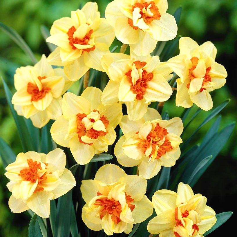 Нарцисс Дабл Фэшн - махровый, красивоцветущий, многолетний сорт. Цветки крупные, желтого цвета с красно-оранжевой короной. Луковицы нарциссов среднего размера, отлично приживаются при любых климатических условиях. Растение неприхотливое в выращивании, стебель прямостоячий, крепкий. Нарцисс Дабл Фэшн пользуется особой популярностью в декоративном садоводстве, их используют в озеленении, выращивают в открытом грунте на клумбах.