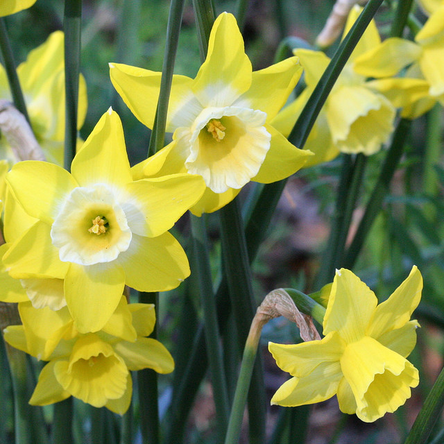 Нарцисс Hillstar - на стебле до 6 цветов. Высота до 35 см. Цветки ароматные, 2—3 см в диаметре. Трубка (коронка) небольшая, оттопыренная, до 2,5 см длиной, зеленовато-жёлтая.