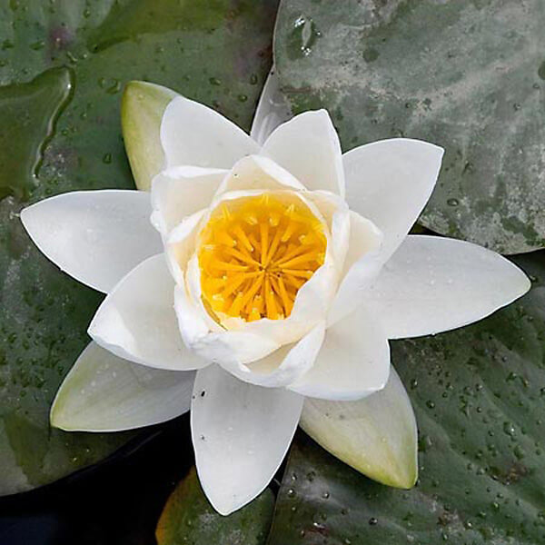 Нимфея гибридная Gladstoneana – крупный сорт кувшинки со снежно-белыми цветами и ярко-желтыми тычинками. Диаметр цветков может доходить до 30 см. Высаживается сорт на глубину от 60 см и подходит только для больших озер и прудов. Устойчива к холодам, с крепкими стеблями до 150 см в длину и листьями темно-красного цвета, которые постепенно становятся темно-зелеными.