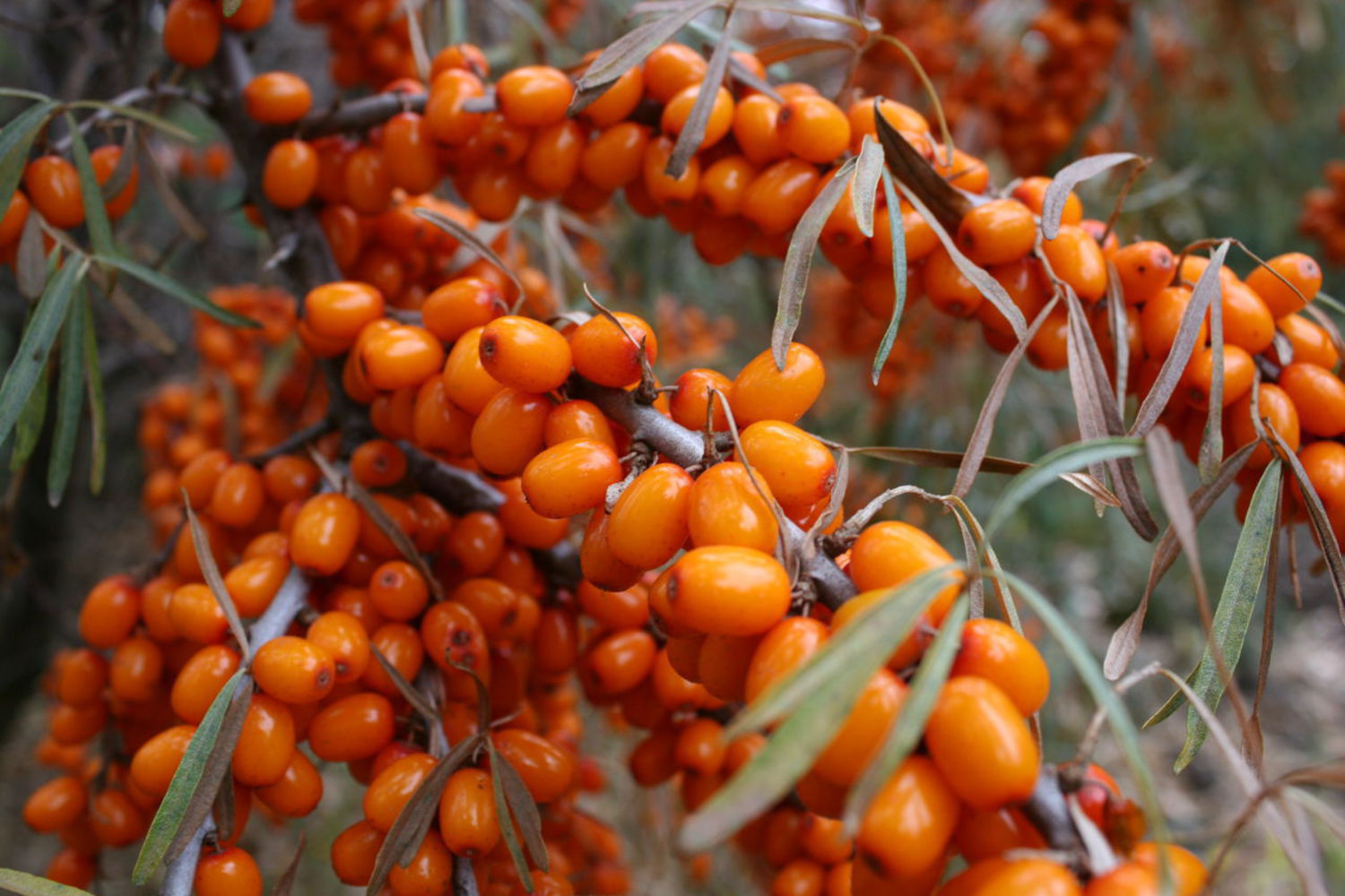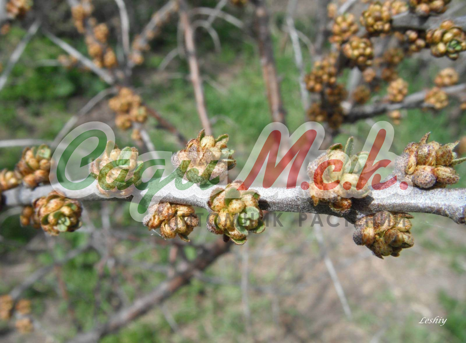 Саженцы облепихи Лучезарная превращаются к лету в многоствольные, среднерослые, с округлой кроной кусты. Колючесть слабая. Плоды темно-оранжевые, удлиненно-овальной формы. Мякоть средней плотности. Плодоножки длиной 6,0-7,5 мм. При сборе плоды отрываются вместе с плодоножкой, не раздавливаются. Созревают в середине сентября.Плодоносит обильно и ежегодно. Крупномер Лучезарная имеет техническое назначение. Устойчивость к болезням и условиям среды, зимостойкость высокая.
