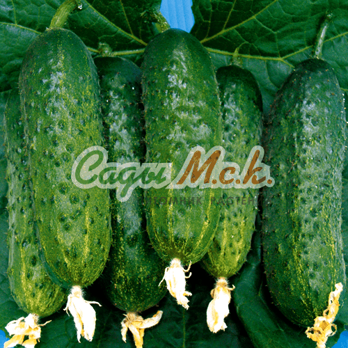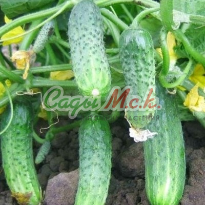 Раннеспелый (45-50 дней от всходов до плодоношения) партенокарпический гибрид с букетным заложением завязей (2-4 в одном узле). Растение сильнорослое с ограниченным ростом боковых побегов. Рекомендован для выращивания в теплицах, под временными пленочными укрытиями и в открытом грунте. Посев на рассаду в конце апреля. Высадка рассады в грунт в конце мая – начале июня в фазе 3-4-х настоящих листьев. Посев непосредственно в грунт – в мае – июне. Схема посадки 30х70 см. Плоды красивые, цилиндрические, темно-зеленые, длиной 10-13 см, мелкобугорчатые, массой 100-120 г. Отличная товарность сочетается с великолепными вкусовыми качествами. Зеленцы с тонкой, нежной кожицей, прочной и хрустящей мякотью, идеальны для консервирования и для употребления в свежем виде. Гибрид имеет высокую устойчивость к настоящей и ложной мучнистой росе, корневым гнилям. Урожайность — 10-12 кг/м2.