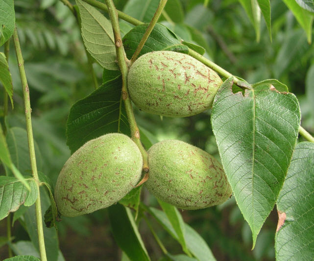 Орех серый - листопадное дерево семейства Ореховые. По внешнему виду очень похоже на маньчжурский орех. Своим названием этот вид ореха обязан цвету своих веточек, ведь в отличие от коричневых веточек маньчжурского ореха, эти имеют серый цвет. Сложные листья не превышают метровой длины. В целом крона серого ореха выглядит эффектно и ценится за декоративность. Извилистая скорлупа плодов ореха серого обеспечивает плотное удержание зелёной оболочки ореха, отделить которую сложно. Оболочка покрыта липким и смолистым слоем.. В зелёном виде она уходит под снег. Плоды собирают ранней весной.