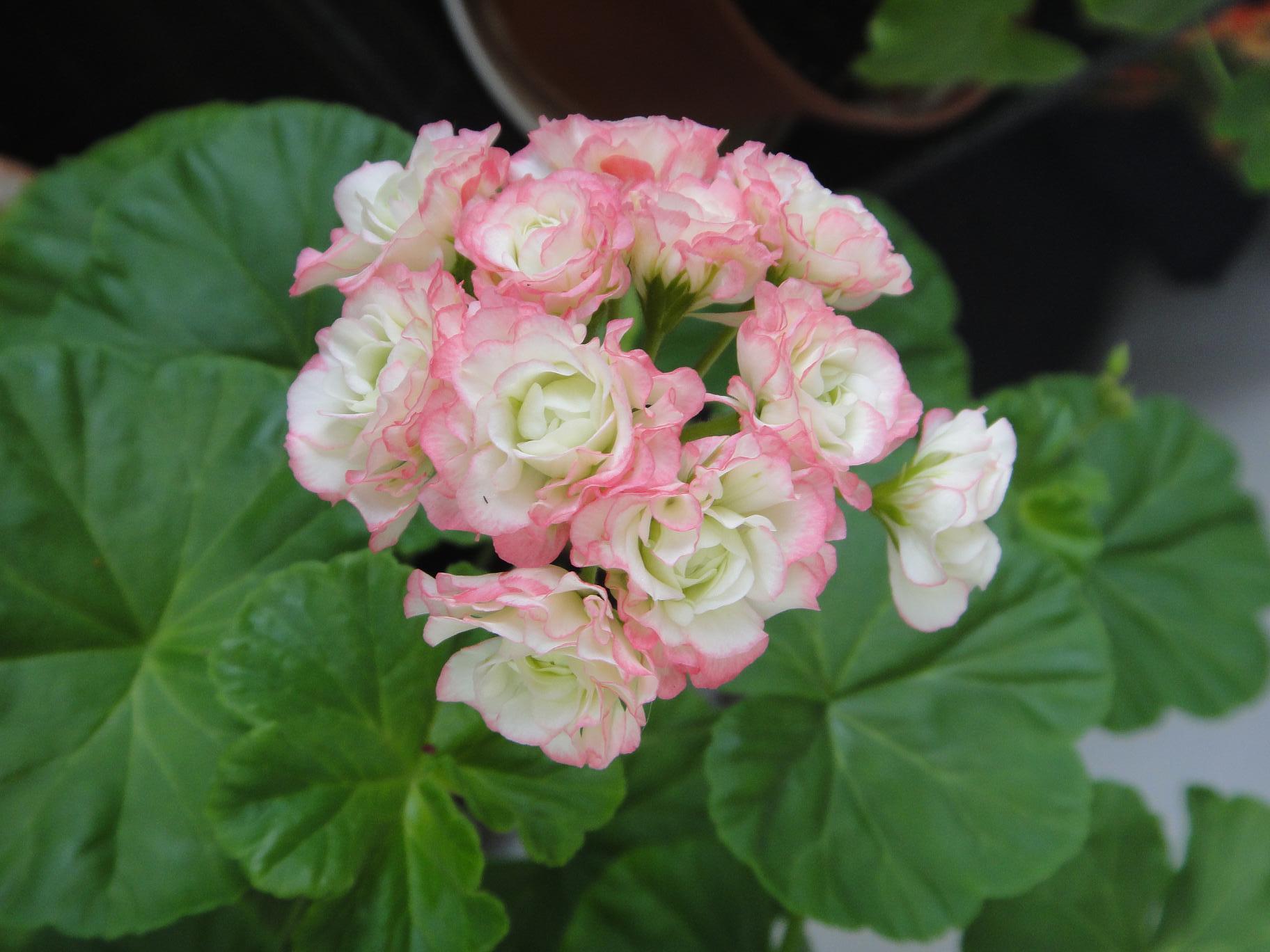 Пеларгония Apple Blossom Rosebud - высокий свободолюбивый кустарник. Листья зеленые, крупные. Цветки растут в соцветиях, которые напоминают букеты миниатюрных роз. Отличаются цветы двойной или тройной окраской: внутренние лепестки белые или белые с зелеными оттенками, а кончики внутренних - насыщенно-розовые.