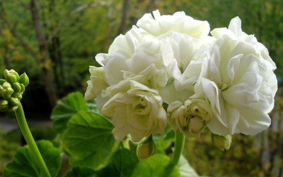 Пеларгония Vit Rosen - красивейший сорт. Листья этого кустарника зеленые с рельефным жилкованием. Побеги толстые, зеленые. Соцветия большие и плотные, зонтиковидной формы. Цветки густомахровые, снежно-белые с едва заметным зеленым оттенком у основания.