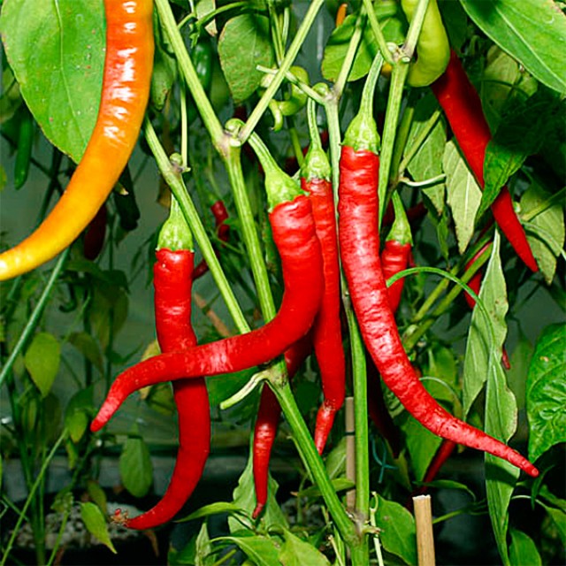 Перец Кайенский считается самым популярным острым сортом во всем мире. Плоды довольно крупные, до 80 грамм, имеют насыщенный жгучий вкус, сочную, толстую мякоть, более других богаты витаминами С и А. Куст высотой до 90 см, может выращиваться на открытой гряде или под пленкой, тепличный вариант не рекомендуется из-за плохой переносимости повышенной влажности воздуха, однако полив (под корень, утром или вечером) должен проводиться регулярно. При умеренном потреблении, перчики приносят ощутимую пользу – выводят токсины, снижают риски образования тромбов, улучшают кровообращение. Во время наращивания зеленой массы, следует подкармливать растение азотными удобрениями, а в момент завязки плодов – фосфорно-калийными. Культура теплолюбивая, нуждается в регулярном рыхлении.