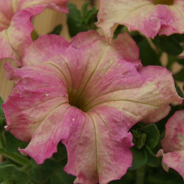 Петуния Antique Shades - крупноцветковая петуния с уникальными окрасками цветов. Цветки светло-розовые с желтыми пятнами различного размера. Эффектно выглядит в горшках и больших контейнерах. Высота растения достигает 25-38 см, ширина 25-30 см.