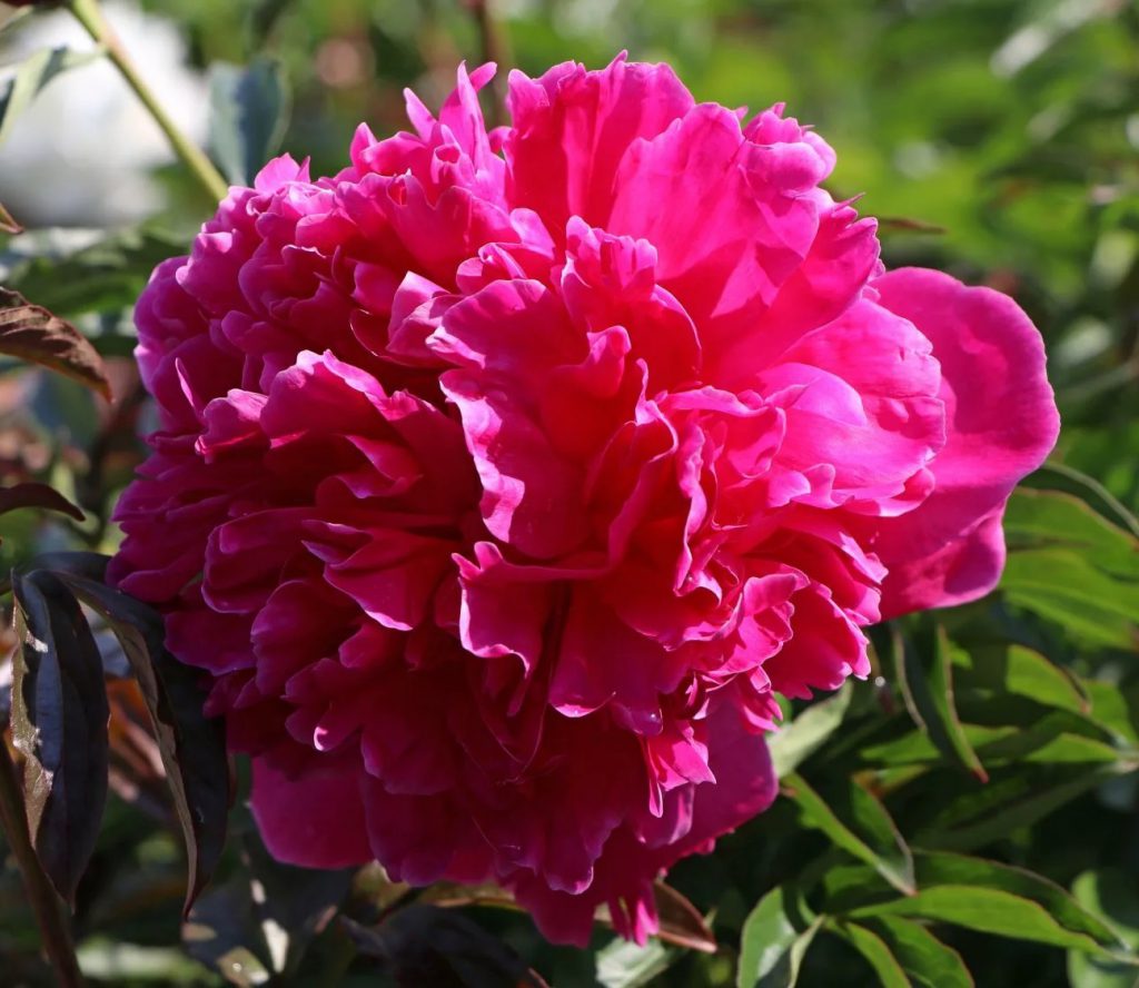 Травянистый пион Felix Kruss махровый, полушаровидный. Лепестки собраны в соцветия карминно-красного цвета с фиолетовым оттенком. Темно-зеленая листва создает для них прекрасный фон, оттеняя и выделяя их. Ненавязчивый приятный аромат. Высота 90 см. Размер цветка 17 см.