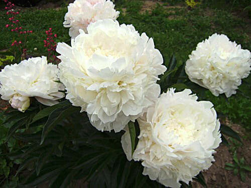 Травянистый пион Marie Lemoine нежное и хрупкое растение невероятной красоты. Соцветия крупные и махровые, похожи на величественную корону. Лепестки окрашены в бело-кремовый цвет. В центре короны сверкают крупные кремово-желтые петалодии, в середине которых игриво выглядывают крупные лепестки. Цветет этот пион обильно в поздний период. Высота 70 см. Размер цветка 20 см.