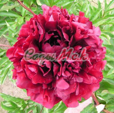 Травянистый пион Marshal Mac Mahon махровый полушаровидный (шаровидный), пурпурно-красный. Цветок 16-18 см в диаметре. Стебли прочные, прямые. Листья мелкие, сборчатые, тёмно-зелёные. Растение до 100 см высотой. Цветет обильно с июня в течение 10—12 дней. На стебле 3—4 бутона. Продолжительность цветения до 7 дней. Ароматный. Не плодоносит.