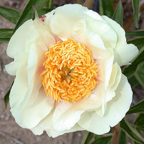 Травянистый пион Starlight гибридный. Цветок анемоновидной формы, крупный, светло-кремовый, аминодии – желтые. Высота куста 0,7–0,8 м.