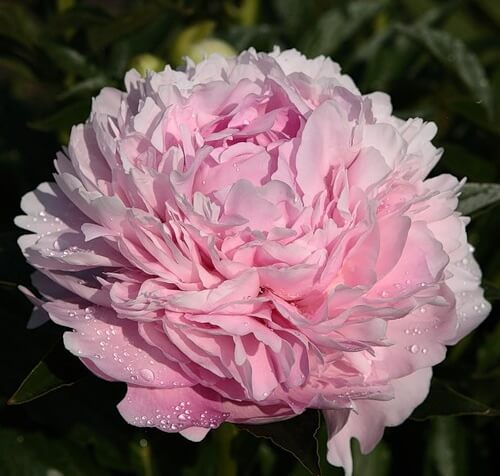 Травянистый пион Susie Q имеет компактный куст, с крупными махровыми цветами, розовидной формой цветения. Лепестки ярко розовые, хорошо контрастируют с темной зеленью листьев. Аромат легкий. Высота 75 см. Размер цветка 18 см. Средне-поздний срок цветения.