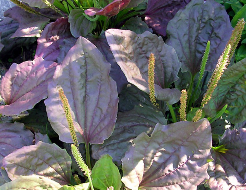 Plantago major Purpurea отличается высоко декоративными, яркими, пурпурными, красно-бордовыми листьями овальной формы, собранными в прикорневую розетку. Цветет сорт в мае-июне, цветками, формирующими колос. Стебли прямостоячие. Высота растения - до 20 см. Растение не требовательное, морозоустойчивое.