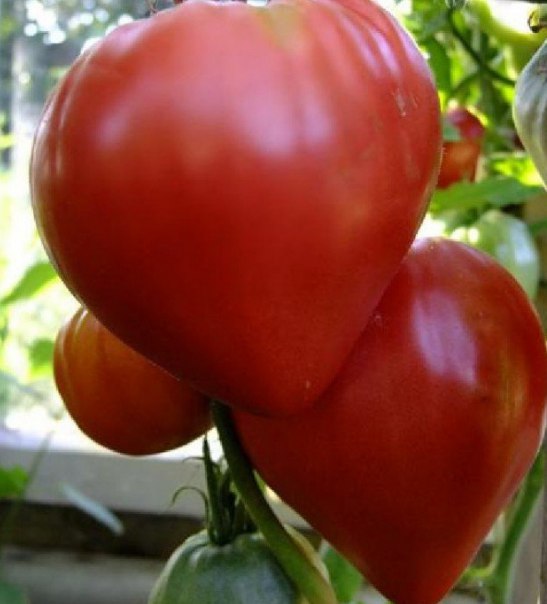 Помидор Bison - индетерминантный кустарник высотой 160-180 см. Плоды округлой, иногда сердцевидной формы, красного или розового цвета, массой 250-300 грамм. Мякоть красная, вкусная, сладкая, состоит из 4-5 камер. Урожайность - до 25 кг с куста. Сорт устойчив к заболеваниям.