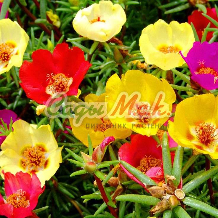 Крупноцветковая смесь сортов. Растения со стелющимися сочными стеблями, высотой 10-12 см. Цветки крупные, очень яркие, самой разнообразной окраски, диаметром 3-4 см. Цветки открываются только в ясные, солнечные дни. Цветет с июля до заморозков. Широко используется для оформления бордюров, каменистых горок, выращивают портулак также в контейнерах, горшках и балконных ящиках.