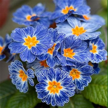 Примула Tie Dye - очаровательное ранозацветающее растение, которое не оставит равнодушными никого. Гибрид примулы обыкновенной. Цветки звездообразной формы сине-голубого окраса, с желтым центром и продольными белыми штрихами на лепестках. Размер цветка достигает около 5 см. Сезон цветения: апрель-июнь. Цветки ароматны. Листва плотная, остается зеленой до самой осени. Розетка листьев прикорневая.