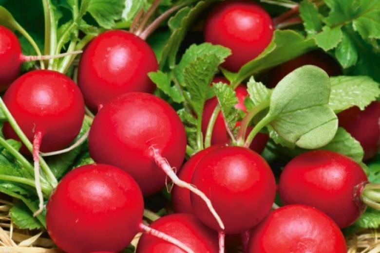 Редис «Сора» — всесезонный сорт, дающий урожай уже через три недели после всходов. Круглые плоды имеют красный окрас.