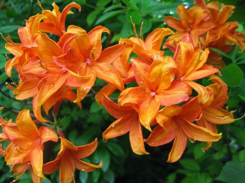 Рододендрон Golden Eagle - среднерослый листопадный кустарник, с густой компактной кроной. Молодые листья бронзово-зеленые, осенью оранжевые. Цветки желто-оранжевые, душистые. Цветение обильное. Солнце, полутень. Кислые, торфяные почвы. Размер 1,5 м. Период цветения - май-июнь.
