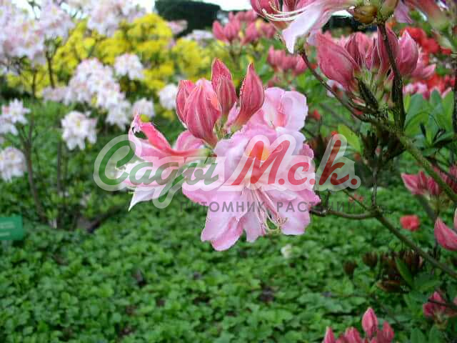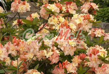 Рододендрон листопадный Irene Koster - крупноцветковая азалия. Листопадный кустарник. С возрастом его крона сильно густеет. Хорошо растет как на солнечных, так и на тенистых местах. Гораздо более неприхотливый, чем рододендроны и достаточно морозоустойчив. Среднерослый кустарник с густой, сомкнутой кроной. К 15-ти годам достигает 140см в высоту и 160см в диаметре. Многочисленные ароматные желтые с розовым рисунком цветки. Цветет в конце мая. Обильное цветение повторяется из года в год. Один из самых привлекательных морозоустойчивых сортов.