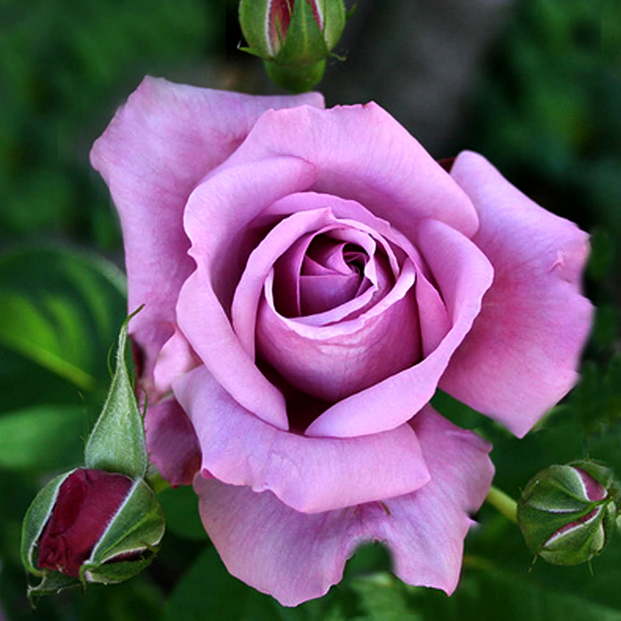 Роза Blue Moon - всемирно известный сорт роз. Отличается исключительно сильным ароматом. Бутоны высокие, заостренные. Цветы серебристо-сиреневые до голубого, чашевидные, с высоким центром, махровые (30 - 40 лепестков), диаметром 8 - 10 см, обладают насыщенным ароматом с пряными нотками. Кусты сильнорослые, высотой 70 - 110 см, листья крупные, светло-зеленые, полуглянцевые. Сорт имеет мало шипов. Цветение обильное, продолжительное до поздней осени. Устойчивость к заболеваниям высокая, морозостойкий сорт, хорошо переносит жаркое лето.