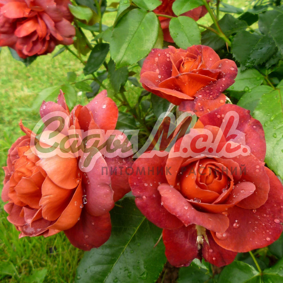 Europeana цветет полумахровыми или махровыми чашевидными розетками около 7-8 см в диаметре очень чистого красного цвета. Полностью распустившиеся цветки оттеняются пучком ярко-желтых тычинок в центре. Аромат легкий или отсутствует. Листва необычайно долго сохраняет красный оттенок, и становится темно-зеленой только перед тем, как цветки на концах побегов распустятся. Куст густой, округлый, 60-90 см высотой и шириной.
