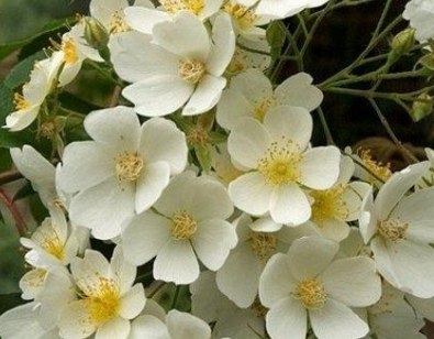 Роза Kiftsgate - очень крупная роза для больших садов. Цветки мелкие, диаметром не больше 2,5 см, немахровые, белые с яркими желтыми тычинками. Располагаются в огромных соцветиях. Цветение продолжается несколько недель. Цветки очень нежные и элегантные. Цветущий куст наполняет воздух вокруг благоуханием, в котором ощущаются запахи ванили, банана и мускуса. Куст крупный, 5 м в высоту и 3 м в ширину, с дуговидно-поникающими побегами, вооруженными шипами около 1 см длиной. Устойчивость к заболеваниям и дождю высокая.
