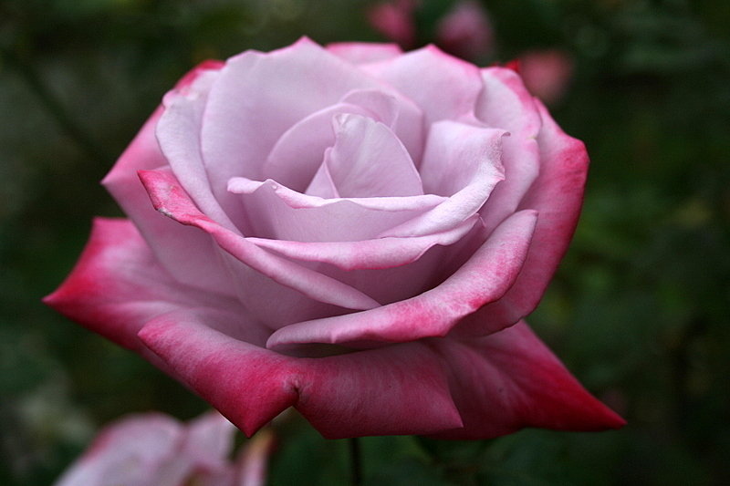 Куст вырастает до 1,1 м в высоту и около 0,8 м в ширину. Разветвлен слабо, покрыт глянцевой, темно-зеленой листвой. На цветоносе формирует от 1 до 3 бутонов. Размер цветка – 7 см, махровость – 30 лепестков. Оттенок – светло-сиреневый с вишневой каймой. В жару окрас светлеет, а в холодную погоду – темнеет. Крупномер Paradise источает сильный, приятный аромат. Проявляет среднюю устойчивость к мучнистой росе, черной пятнистости и дождю. Относится к повторноцветущему сорту.