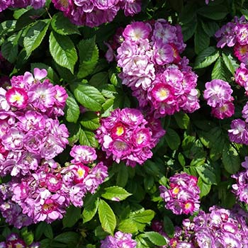 Роза Perennial Blue - это повторноцветущая до мороза роза с большими соцветиями полумахровых цветков, лилово-розовых вначале и затем бледно-синевато-фиолетовых, диаметром по 2-3 см. Аромат насыщенный сладкий. Листва маленькая, блестящая, очень устойчивая к болезням. Высота куста 200-300 см. Ветви гибкие, их можно легко согнуть и сформировать широкий разветвлённый куст.